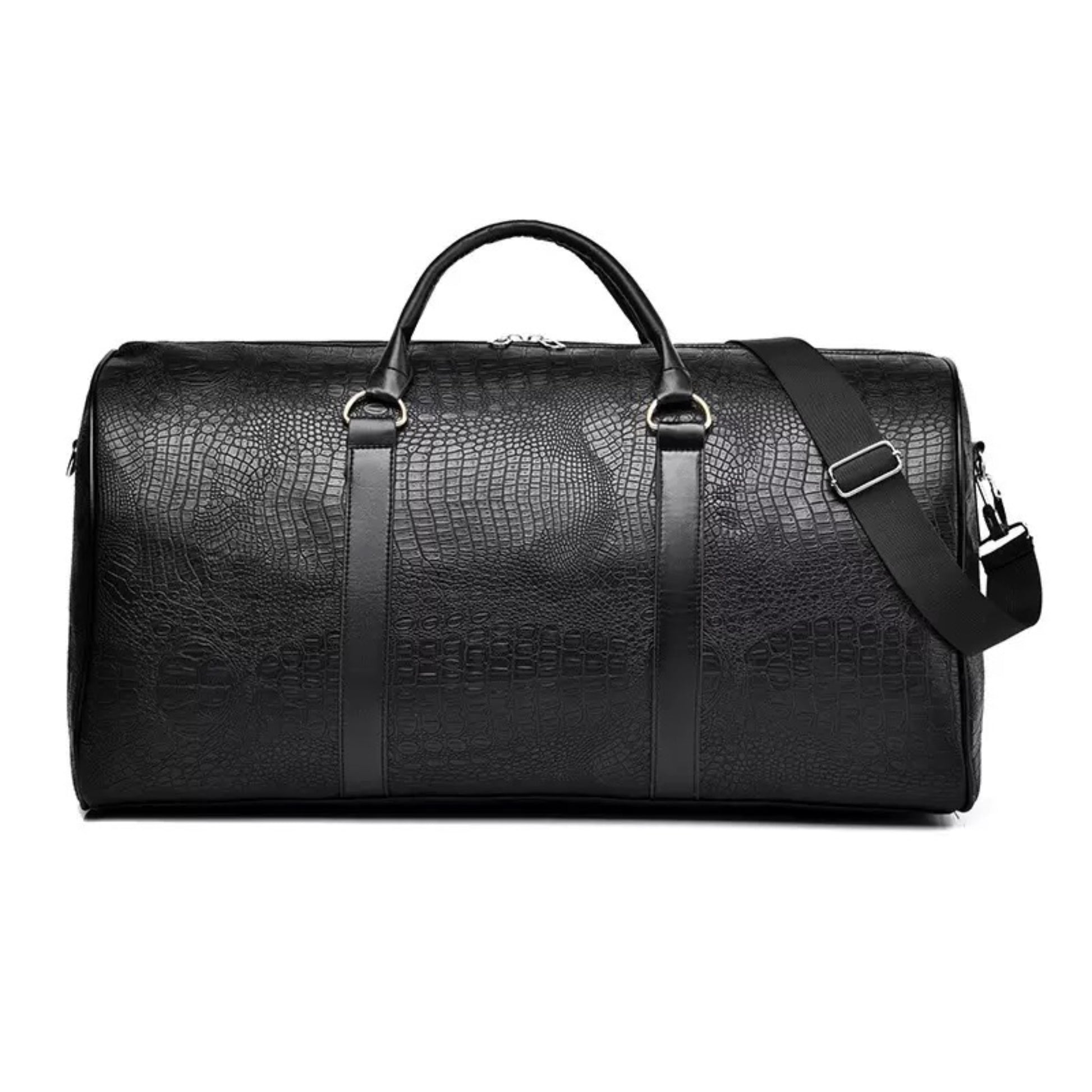 Noir croc duffel bag